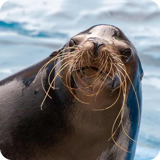 このゾーンでは、海でくらす動物たち――アザラシやラッコ、イルカ、サメなどの多彩な生きものたちを間近で見ることができます。